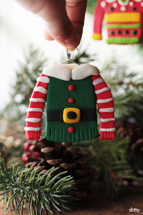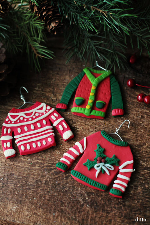 These Little Helpers Hyggely Sweaters Ornaments are made using Ditto oven-bake clay! Follow easy instructions to make custom little sweaters to hang and cherish for years to come. Gather with friends and family to celebrate being together and making memories!