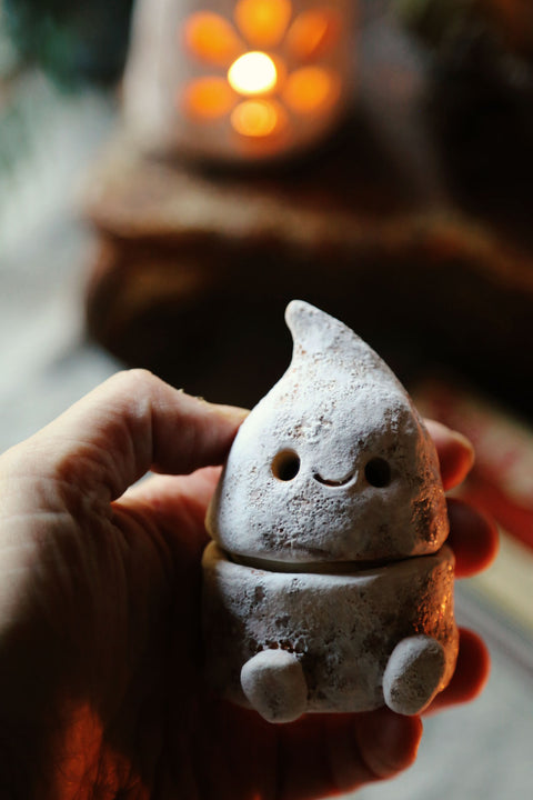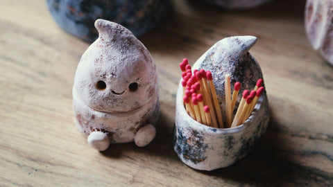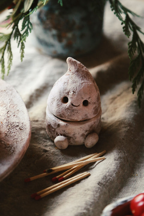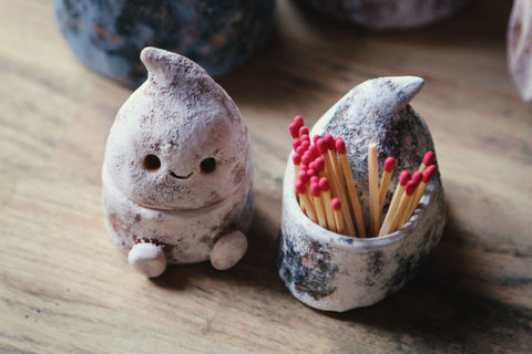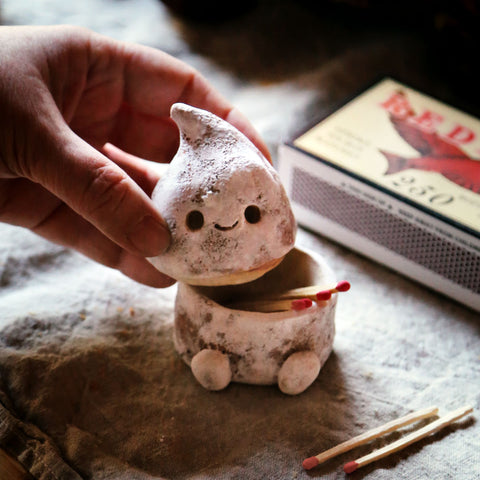 This tiny guy can hold matches for your winter candles or any small-and-special treasure that needs a keeper. Designed purely to make you smile every time you walk past. 🕯️✨