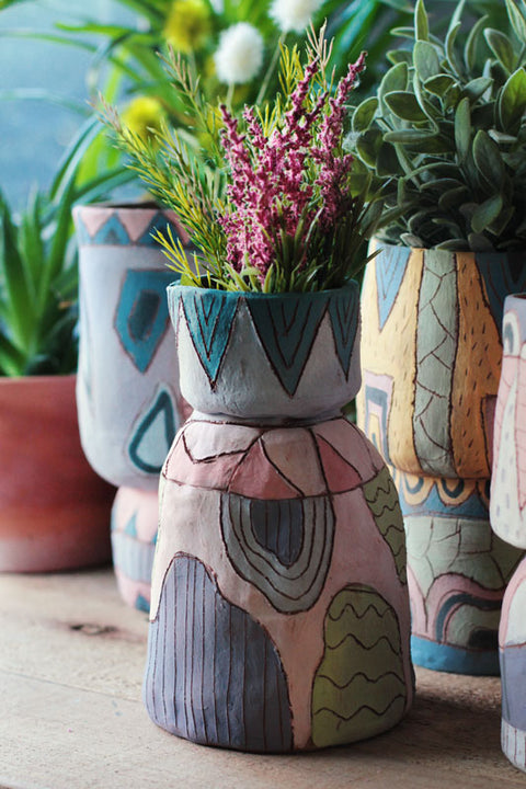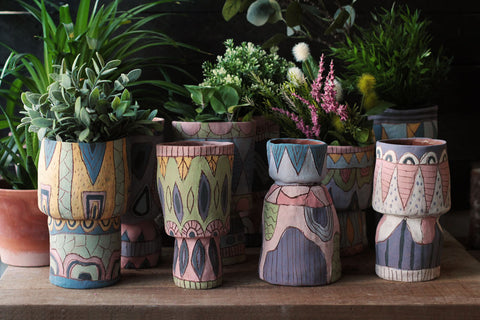 In this 2-part clay workshop, hand-build an organically shaped large vessel using terracotta clay & then decorate using the unique sgraffito method. Jazz up your planter with super happy & colourful glazes! Make 1 planter.