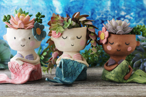 Kids sculpt, paint, and design a set of mermaid-world keepsakes—from a charming mermaid planter and a collection of pastel shells to a fluid-art ocean canvas and mini mermaid companions.